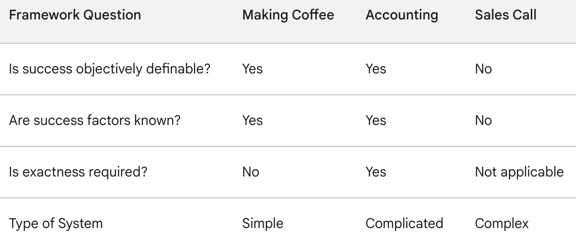 Think of your office coffee machine. It's a simple system. You know exactly when you've got a successful outcome (a steaming cup of coffee), there are clear instructions (push a button, maybe add grounds), and even if you don't follow those instructions perfectly, you'll probably still get a decent result.