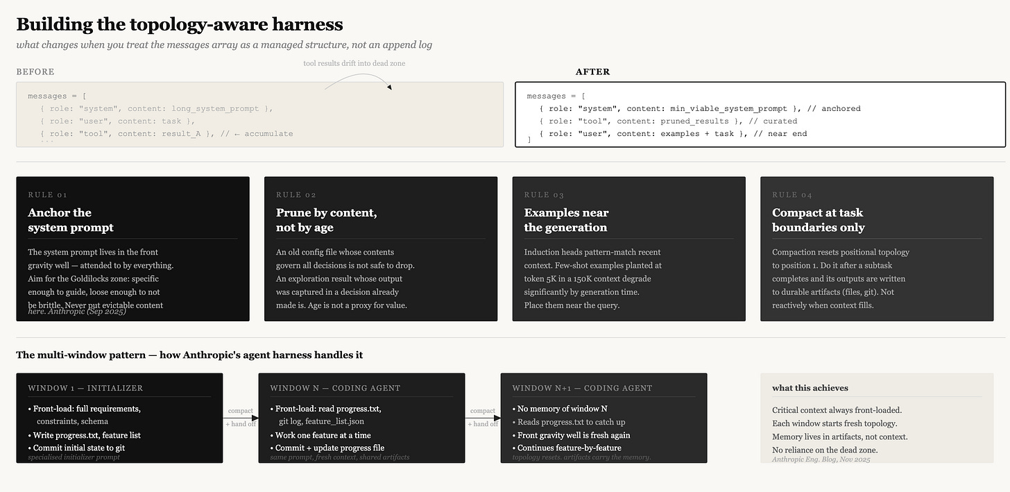 None of this is exotic engineering. It is the discipline that follows from taking the physics seriously. The context window is not a neutral container. It has shape. Build accordingly.