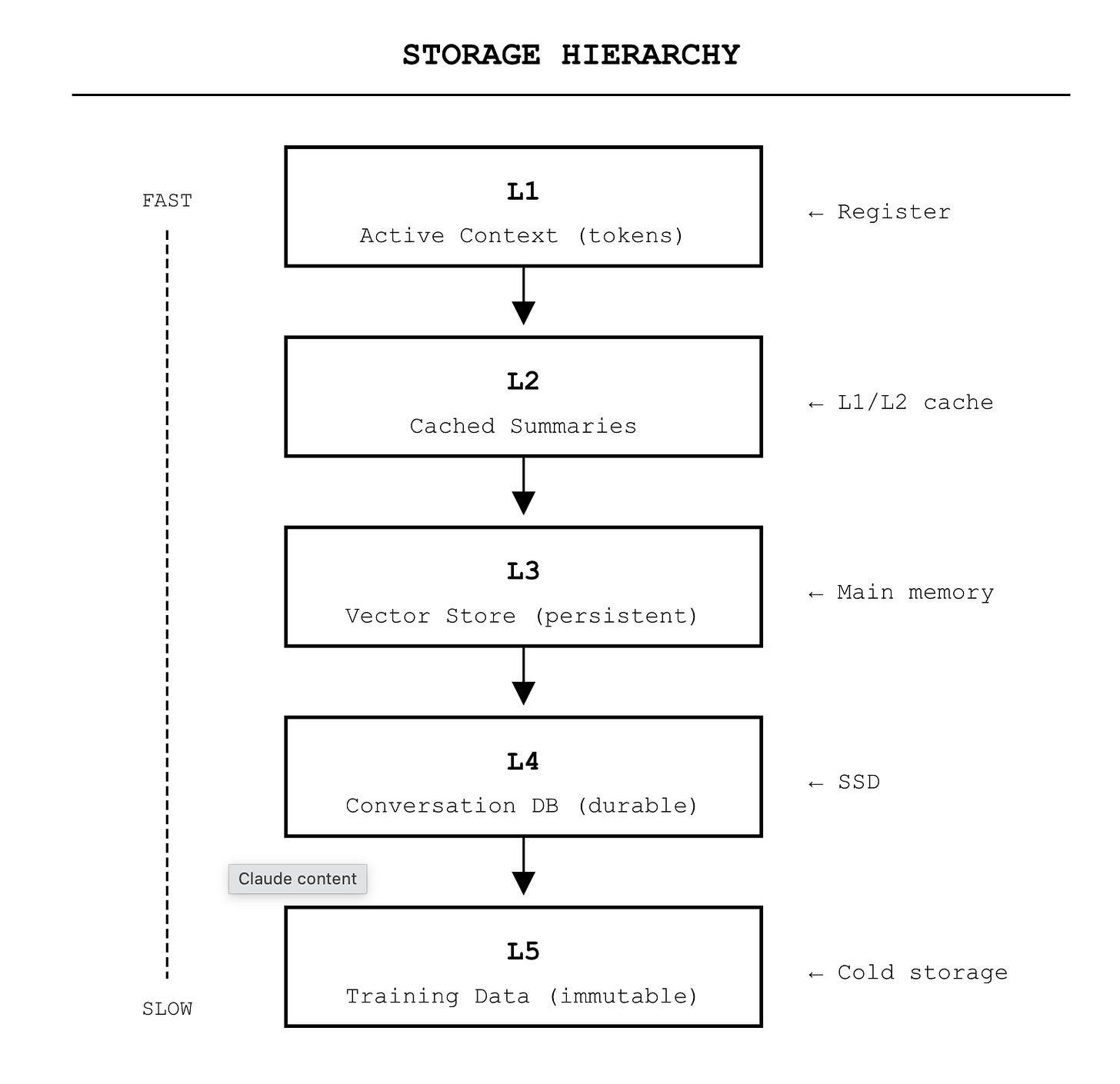 The abstractions are leaking. What we’re building isn’t a collection of independent systems. It’s a storage hierarchy pretending to be separate products.